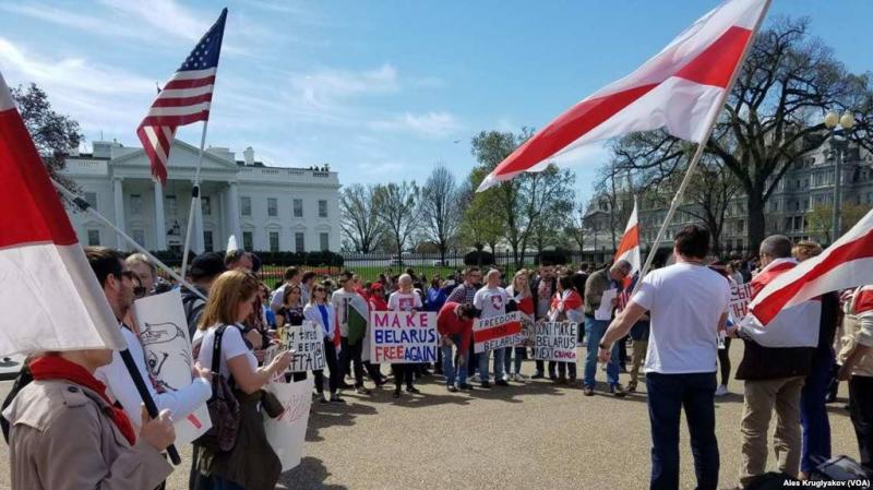 Белорусы Америки проводят митинг у Белого дома в знак протеста против разгона мирной демонстрации в Минске на День Воли.