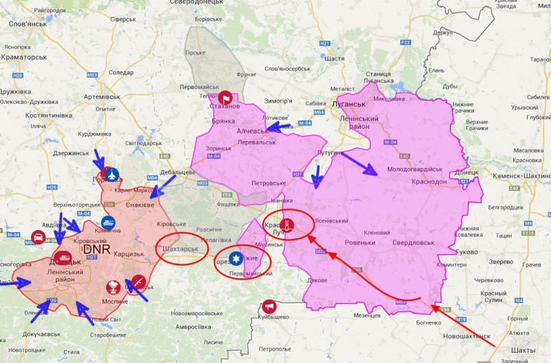 Через несколько дней вводится вторая колонна, только в направлении на Луганск, через Изварино, Краснодон и Молодогвардейск.