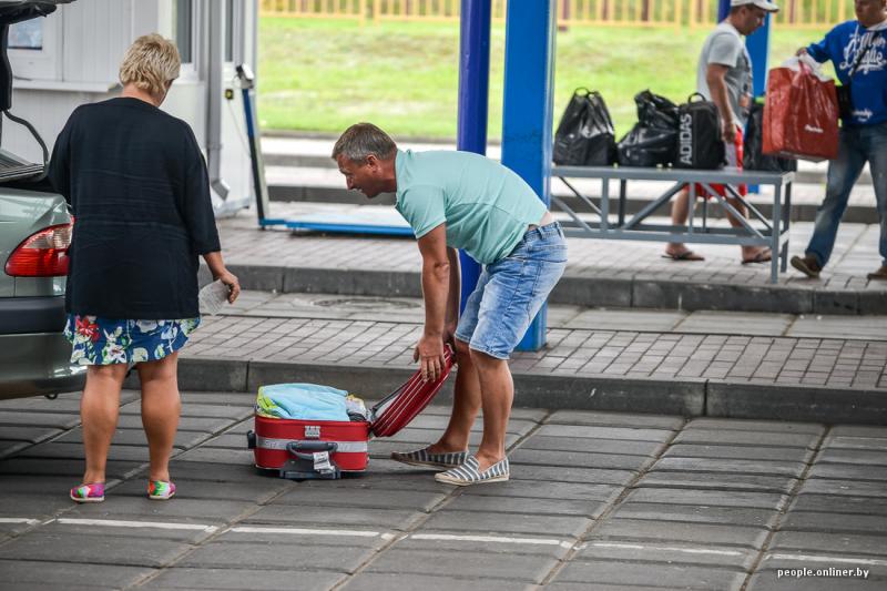 — Мы из Гродно. Ездили отдыхать на пару дней в Гданьск. Сделали визу — и вот первый раз за полгода выехали. Наверное, все же ничего не нарушили, — волнуется пара, выгрузившая на весы около 35 килограммов. — У нас тут покупок не много — по мелочи, если глянуть, сколько люди выгружают. До €300 еще далеко.