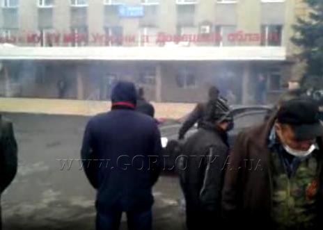 В Горловке Донецкой области около 150 сепаратистов с боем захватили отделение милиции. Боевики также перекрыли проспект Ленина, остановив движение, сообщает ТСН. Больше часа они штурмовали здание, милиция оборонялась. Войдя в здание сепаратисты ломают мебель, бьют оборудование. Оставшихся внутри милиционеров выводят из здания по коридору, выстроенному из людей.