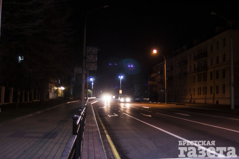 «Праз адзін гарэлі ліхтары на вул.Кіжаватава. Такі спосаб асвятлення быў не рэдкасцю. Амаль на ўсіх вуліцах, якімі нам давялося праязджаць, ліхтары гарэлі праз адзін-два. Ад чыгуначнага вакзала мы праехаліся на вул.Леніна, збочылі на вул.Гогаля і накіраваліся да Берасцейскай цытадэлі. Аўтамабілістаў на шляху сустракалася няшмат, аднак яны былі, - пішуць аўтары артыкула. - Больш жвавы рух назіраўся каля памежнага пераходу «Варшаўскі мост». Пакідаць тэрыторыю роднай краіны мы не планавалі, таму збочылі ў процілеглы ад мяжы бок. Праехаліся па Варшаўскай шашы, бульвары Шаўчэнкі, збочылі на праспект Машэрава і праверылі, ці гараць ліхтары на Савецкай. Горад свяціўся агнямі».