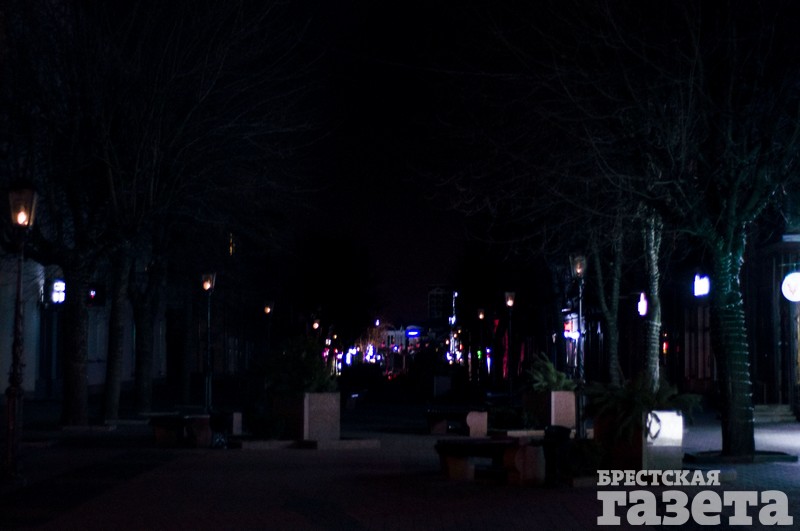 Амаль нічога не змянілася на Варшаўскай шашы. Працягвала гарэць расцяжка са сцягам і гербам, свяціліся некаторыя білборды. Нязручна, але і не страшна было ехаць праспектам Машэрава і вул.Маскоўскай. Там ліхтары гараць праз адзін-два. Частку вул.Савецкай ратуюць газавыя ліхтары.