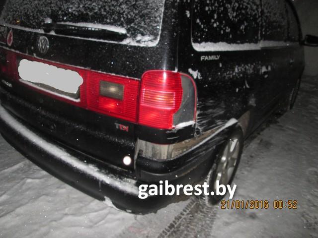 На вул. Цэнтральнай у напрамку вул.28 Ліпеня ён «зачапіў» адну з дзяўчат, якія рухаліся па краі праезнай часткі. Ад удару 24-гадовая берасцейка ўпала. На шчасце, абыйшлося без траўмаў. Кіроўца, у сваю чаргу, нават не спыніўся, каб аказаць дапамогу дзяўчыне. У чарговы раз здзейсніўшы ДТЗ і пакінуўшы месца здзяйснення (яшчэ 2 правапарушэнні), працягнуў начное «катанне» па вул. Цэнтральнай у напрамку вул.Суворова.