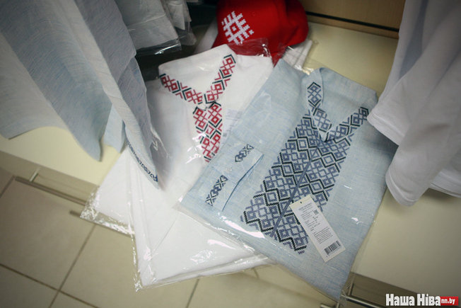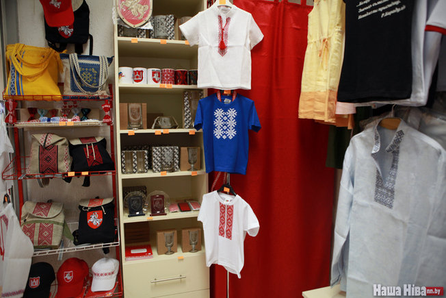 У менскім гандлёвым цэнтры «Сілуэт» працуе крама «Дарэчы», дзе прадаюцца вышымайкі ды іншыя рэчы з нацыянальным арнаментам.