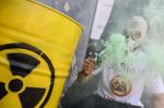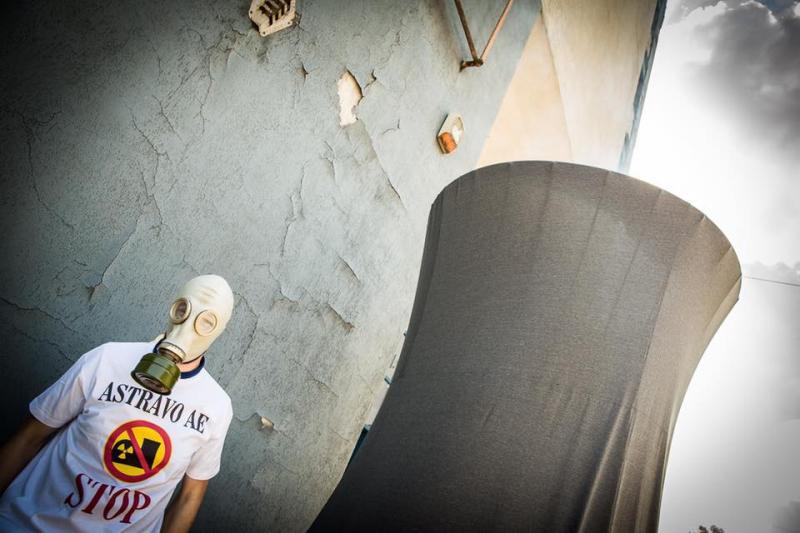 Актывісты ўсталявалі перад беларускай амбасадай макет АЭС. Лукашэнку ж яны прапануюць будаваць АЭС у іншым месцы - напрыклад, у Магілёўскай вобласці.