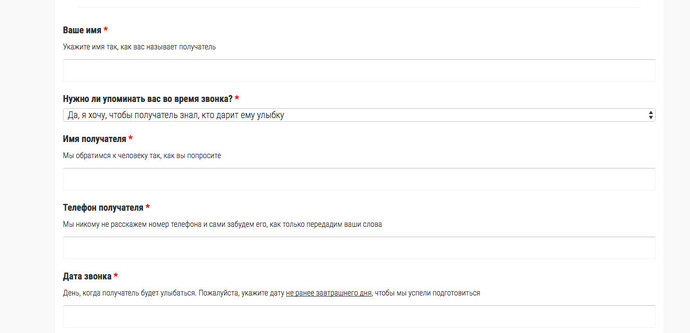 Через сервис можно попросить организаторов позвонить близкому человеку и пожелать ему хорошего дня.