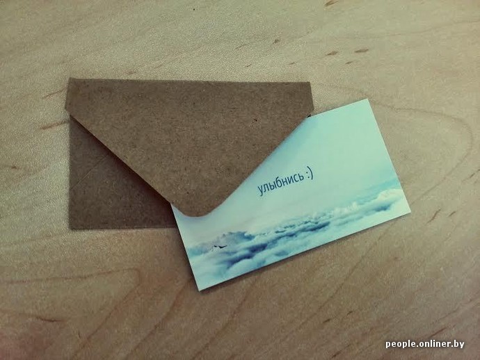 — Мы здороваемся и говорим, что человек классный. Люди приободряются и начинают спрашивать: а кто это? а что это? а как это? Некоторые реагируют болезненно. Но процентов 95 воспринимают такие звонки нормально. После мы говорим, мол, ваш друг такой-то хотел поднять вам настроение, а также передать несколько слов. Затем зачитываем пожелание. Оно указывается в заявке. Разговор мы всегда заканчиваем фразой: «Не переставайте улыбаться, хорошего дня». К слову, порой мы раздаем свои визитки на улице. Закрытый конверт. А внутри карточка с надписью «Улыбнись».