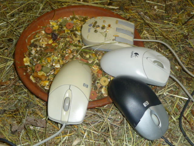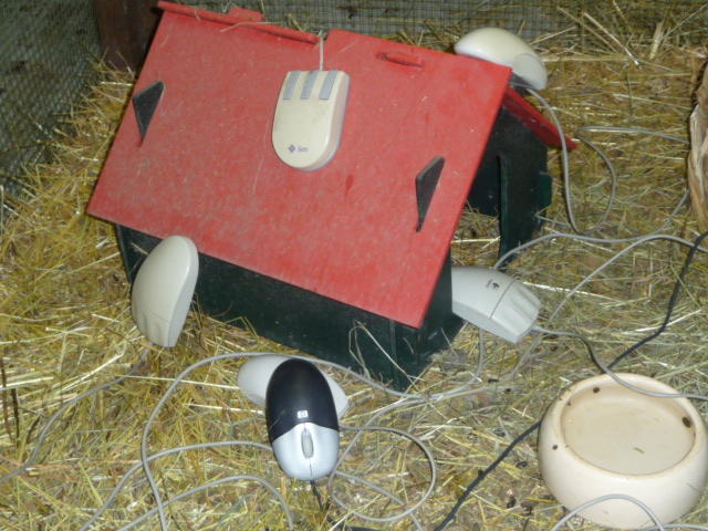Компьютерные мыши в питомник передают сотрудники ЦЕРН. Клетку, в которой раньше жили морские свинки, также пожертвовал один из сотрудников центра.