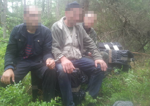 Задержанные — трое граждан Беларуси в возрасте 29, 30 и 47 лет. На месте происшествия найдено 12 свертков с 6 тысячами пачек сигарет марок «Фест», «Фест 7», «NZ Gold Super Slim» и «Минск». Товар отмечен белорусскими акцизами.
