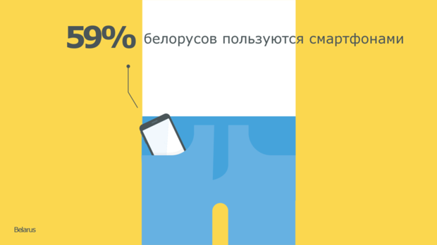 По данным исследования, сегодня 59% белорусов являются пользователями смартфонов. Среди молодых людей в возрасте до 35 лет эта цифра еще выше — в данной категории 89% белорусов используют смартфоны. Практически вся молодежь до 25 лет (93%) пользуется современными гаджетами.