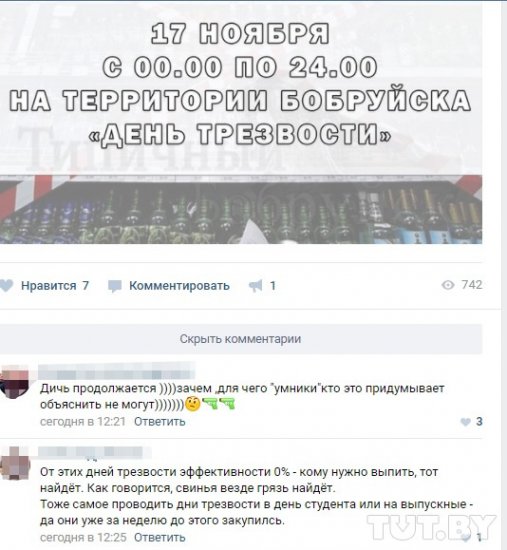 Информация об очередном Дне трезвости примерно за неделю начала активно обсуждаться в соцсетях. Участники различных пабликов сообщали о планах заранее пополнить свои запасы спиртного, делились информацией о том, где же алкоголь можно будет приобрести 17 ноября, если очень захочется выпить.