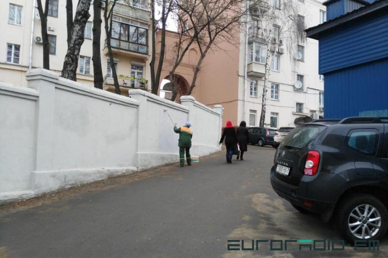 Граффити с изображением бывшего премьер-министра Беларуси Михаилом Мясниковичем просуществовало лишь несколько часов. После 12-ти его закрасила сотрудница ЖЭС.