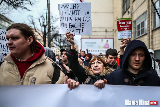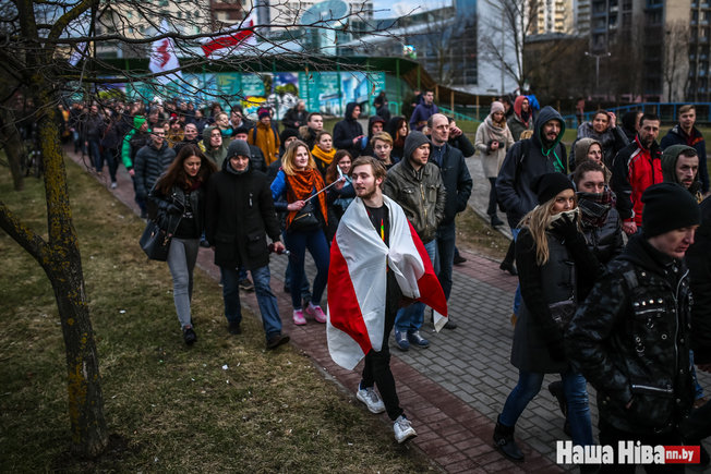 Тысячы чалавек выйшлі на Марш пратэсту ў Менску. Ён прайшоў ад станцыі метро Акадэмія навук вуліцай Сурганава. Шэсце прайшло мірна, без інцыдэнтаў, нягледзячы на падвышаныя захады бяспекі, прынятыя ў сталіцы, паведамляе «Наша Нiва».