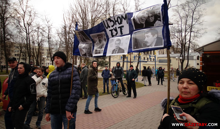 Удзельнікі маршу падрыхтавалі расцяжку з арыштаванымі напярэдадні палітыкамі і актывістамі.