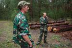 Мы знаходзімся на тэрыторыі радыяцыйнага запаведніка, на 63-м участку Нараўлянскага лясгаса. Звычайны сасновы лес, ніякіх рудых або злавесных дрэў. Тут складуюць толькі што высечаную на суседнім участку драўніну. Саспелая хвоя, дзелавая драўніна даўжынёй шэсць метраў. Лесарубы кажуць, што такая добра пойдзе на кругляк для будаўніцтва. Мікалай без пытанняў паказвае ўсе дакументы на дрэвы. Радыяцыйны фон на ўчастку вырубкі перавышае норму ў два разы, што для запаведніка, лічы, чыстыя месцы.