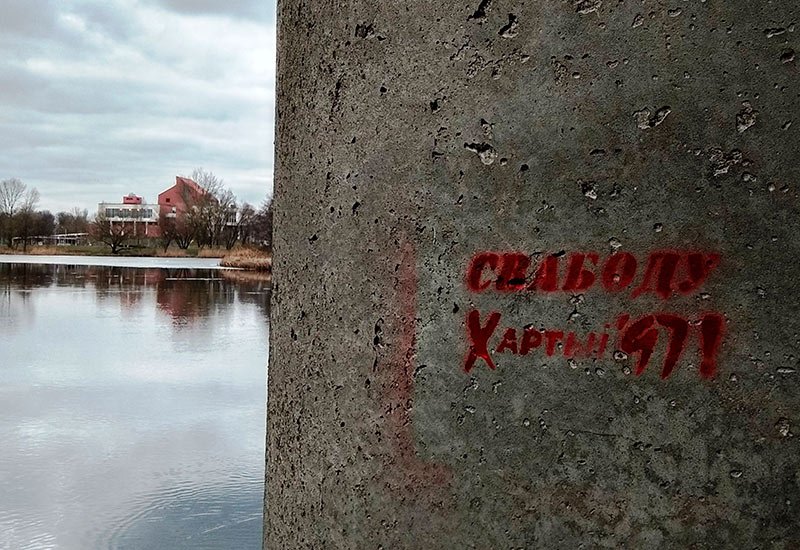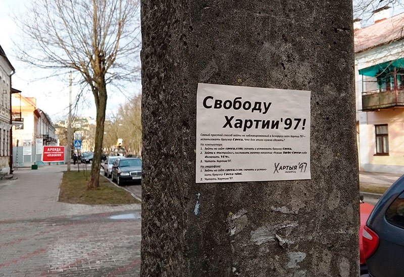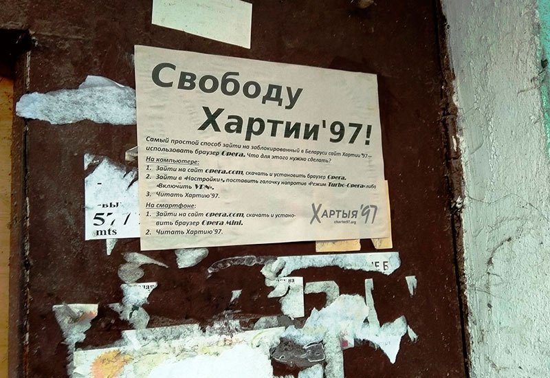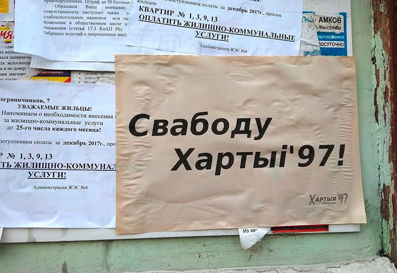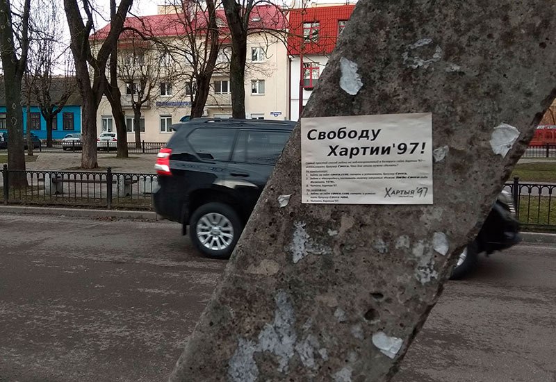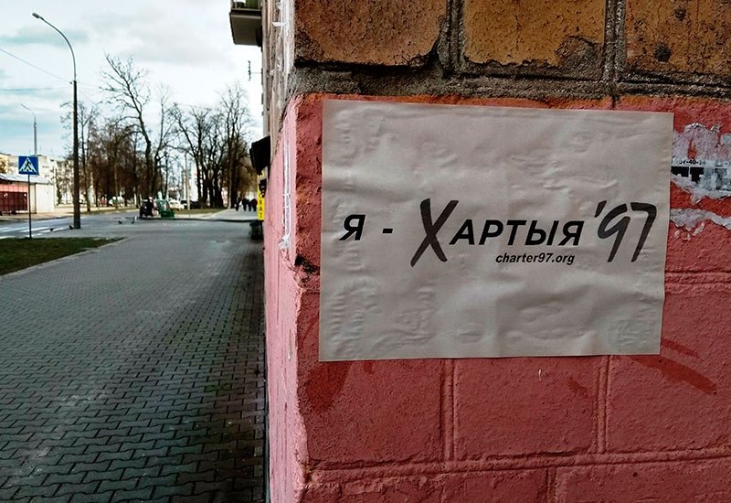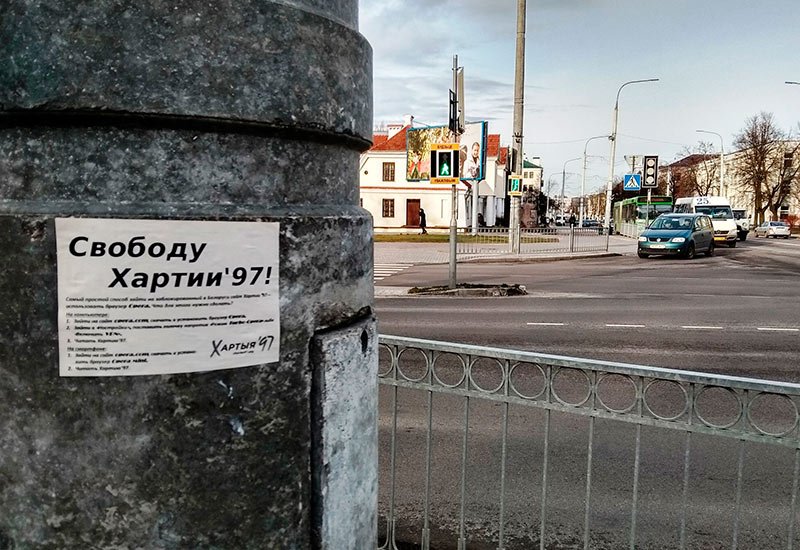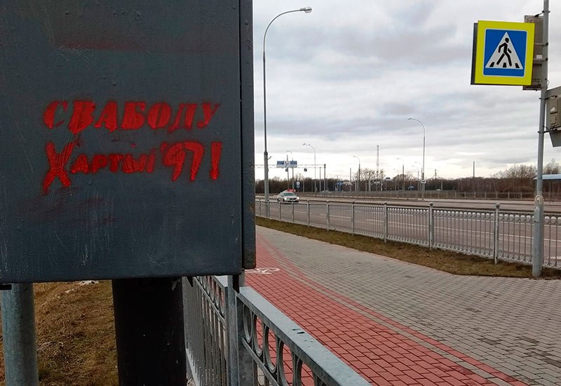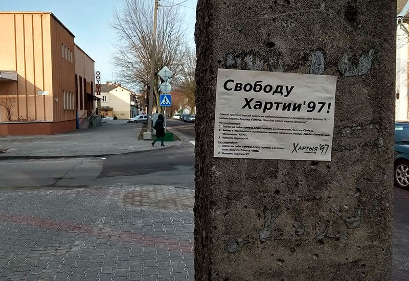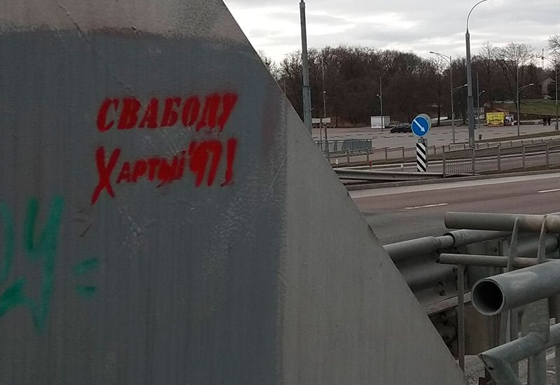 Ранее граффити и листовки с требованием разблокировать «Хартию-97» появились в Минске.