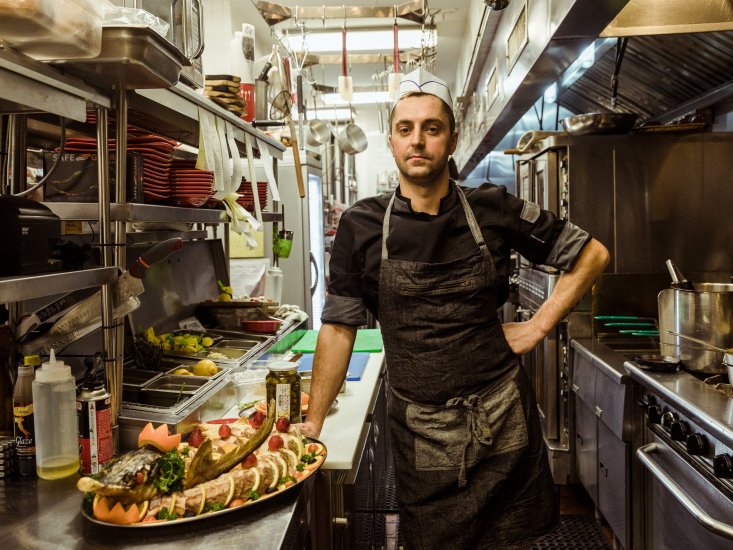 Усё пачынаецца з закусак: маленькія талеркі, якія не такія ўжо і маленькія. Вушы парсюка наразаюцца палоскамі і смажацца – яны атрымліваюцца вельмі храбусткімі і зусім не тлустымі. Дошчачка для сушы ператвараецца ў платформу для бутэрбродаў з селядцом: замест хлеба тут бульба, агурок і яйка ўкрутую; салёнасць маскіруецца смятанай і лустачкамі чырвонай цыбулі.