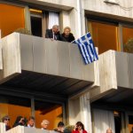 Сотни тысяч греков заполнили центральную площадь Синтагма и прилегающие улицы вокруг нее с плакатами, транспарантами и греческими флагами. Многие люди приехали в национальных костюмах греческой провинции Македония.
