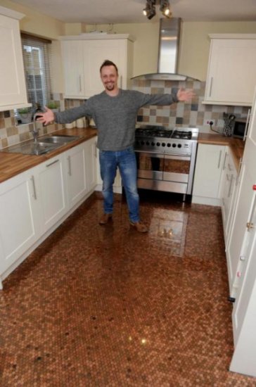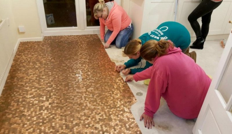 Когда Мэтт Джайлс с супругой решили сделать в своём доме пол, они обшарили в поисках подходящего проекта весь интернет. Идея была гениальной и сумасшедшей одновременно – они решили сделать пол из монет. Перво-наперво креативные супруги отправились на почту и в местные банки, чтобы обменять всю бумажную наличку на монеты. Им пришлось сдать в банк 270 фунтов, на которые они получили 27 тысяч монет.