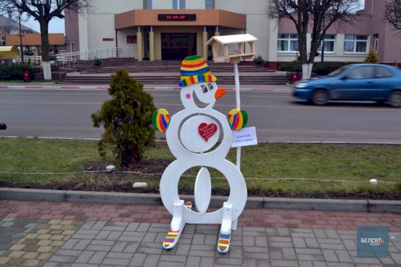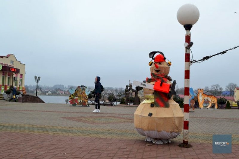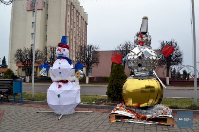 Местные предприятия украсили город так, как они это понимают – с помощью искусственных снеговиков, которые сделаны из автомобильных шин, палок, мешков и других праздничных материалов, передает «Белсат».