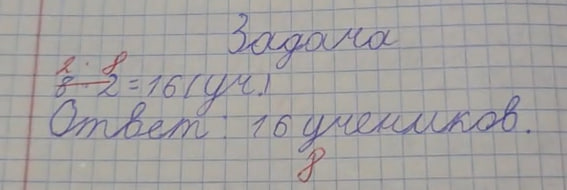 Заданне гучыць так: «У класе 8 сталоў. Колькі вучняў у класе, калі за кожным сталом сядзяць два вучні?»