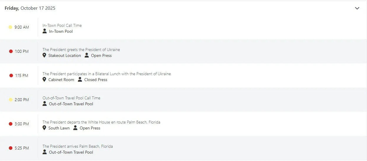 Пра гэта OBOZ.UA стала вядома з раскладу амерыканскага лідара, апублікаванага Белым домам.