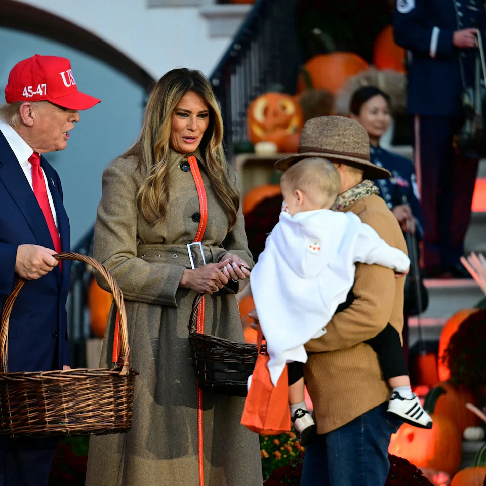 Трамп і яго жонка раздавалі дзецям шакаладкі ў сініх скрыначках з прэзідэнцкай пячаткай. Упрыгожаны дзясяткамі гарбузоў з падсветкай Белы дом выглядаў, як у кіно, а ваенны струнны аркестр выконваў злавесныя мелодыі.