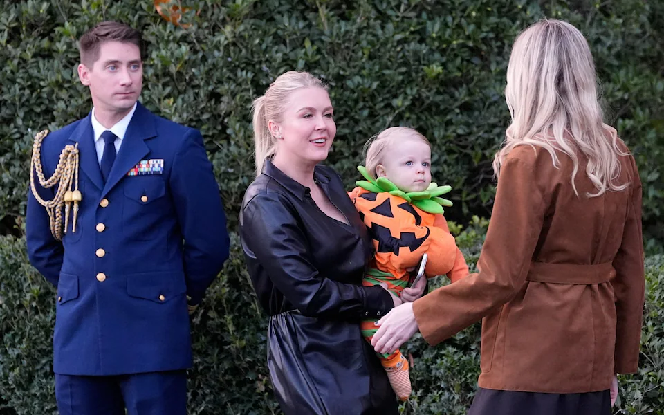 Прэзідэнт, як і раней, не стаў пераапранацца — ягоным касцюмам стаў ён сам. Сярод гасцей былі прэс-сакратарка Белага дома Каролін Левіт з мужам і сынам-гарбузом, саветнік Стывен Мілер з сям’ёй, пераапранутай у шкілетаў, і іншыя супрацоўнікі адміністрацыі.