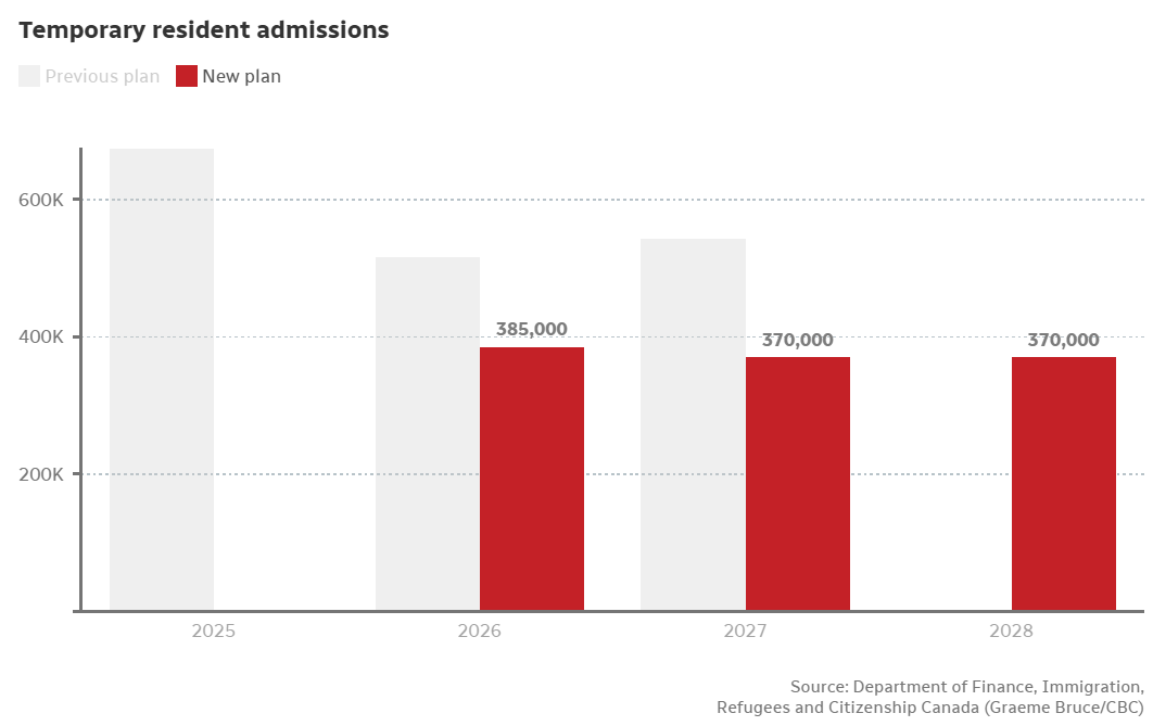 Згодна з новым федэральным бюджэтам, у 2026 годзе Канада плануе прыняць 385 тысяч часовых жыхароў — гэта на 43% менш, чым было запланавана на 2025 год. На працягу наступных двух гадоў квота яшчэ скароціцца — да 370 тысяч чалавек.