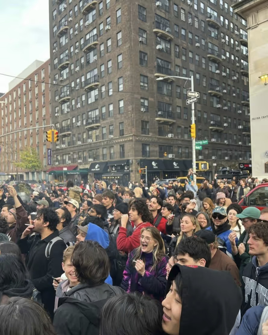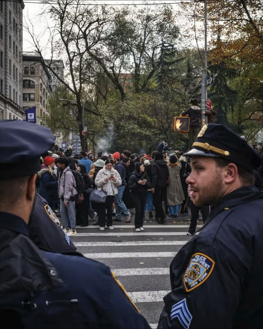 Весялосць працягвалася каля паўгадзіны. Затое потым на плошчу прыбылі як мінімум 20 афіцэраў NYPD (паліцыі Нью-Ёрка), каб папрасіць натоўп разысціся. «Трэба рабіць гэта кожную пятніцу!» — крыкнуў нехта з натоўпу, пасля чаго група ўзарвалася скандаваннем: «Яшчэ адну цыгарэту!».