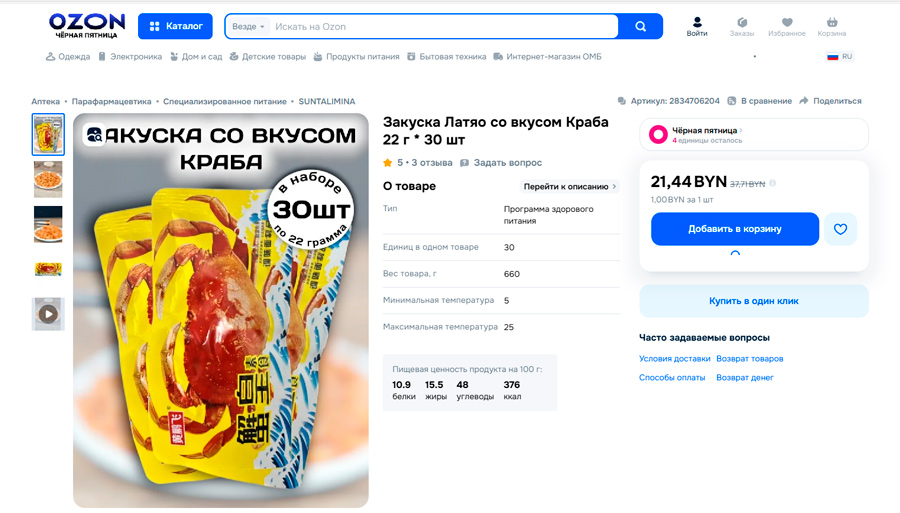 Нягледзячы на забарону, небяспечныя закускі пакуль можна знайсці на маркетплейсах.