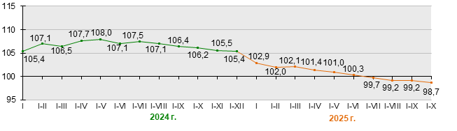 У цэлым за перыяд са студзеня па кастрычнік прамысловая вытворчасць скарацілася на 1,3% у параўнанні з аналагічным перыядам мінулага года, сведчаць дадзеныя Белстата. Але памесачная дынаміка паказвае паступовае пагаршэнне сітуацыі: калі ў красавіку зніжэнне не перавышала долі працэнта, то ў кастрычніку ў параўнанні з тым жа месяцам мінулага года яно дасягнула амаль 6%.