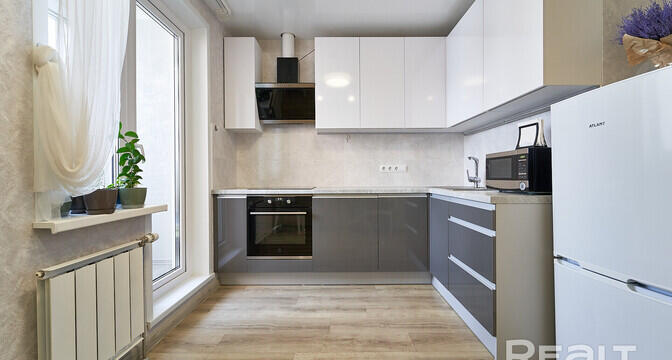 Прапануецца да куплі і варыянт гатовай светлай «аднушкі» агульнай плошчай 42,9 «квадрата». Кватэра поўнасцю ўкамплектаваная і гатовая да засялення. У ёй – кухня з вялікай працоўнай зонай і накіраваным асвятленнем, асобны санвузел з усімі выгодамі і прасторная ванная. Таксама ўсталяваная шведская бытавая тэхніка – духоўка, варочная панэль, выцяжка. На падлозе ўкладзена зносастойкая плітка і лінолеум, усталяваная новая сантэхніка, ёсць два ўбудаваныя шафы. Побач з самім домам з трох бакоў – паркоўка. Просяць за кватэру 94 000 долараў (квадратны метр – 2191$).