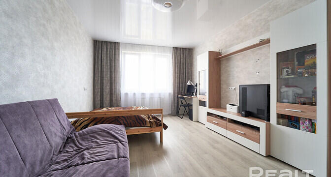 Найбольш даступная па цане з прапанаваных кватэр – гэта студыя ў ЖК «Лайт». Дом падвышанага камфорту быў уведзены ў эксплуатацыю ў 2018 годзе. Перавагі ў тым, што жыллёвы комплекс цалкам агароджаны, уезд на закрытую тэрыторыю магчымы праз шлагбаўм, а ўваход – па чыпах.