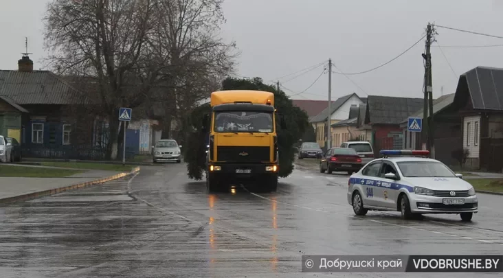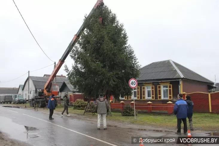 Раней навагодняе дрэва ў Добрушы прывозілі з лесу, а сёлета яго ўзялі з прыватнага падвор'я. Жыхарка вуліцы Савецкай Слава Дабрадзеева сама звярнулася ў дыспетчарскую «Добрушскага камунальніка» з прапановай паставіць у цэнтры горада яліну, якая расла ў яе ў двары, піша «Добрушскі край».