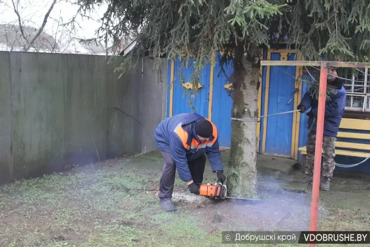 Галоўную ёлку Добруша спілавалі ў двары мясцовай жыхаркі