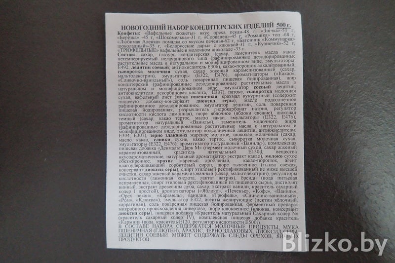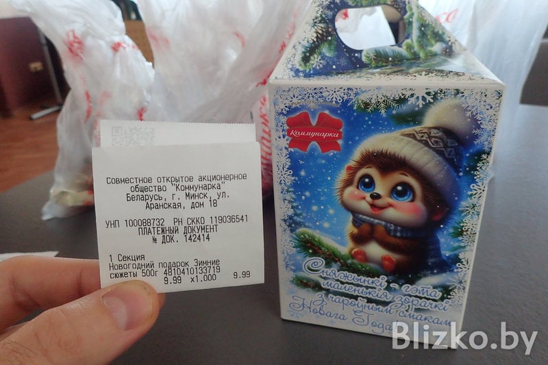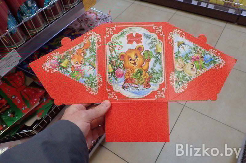 Адзін з перадкалядных дзён мы прыйшлі ў фірмовы магазін «Камунарка» і ўзялі невялікі падарункавы наборчык масай 500 грамаў. Заплацілі мы за яго 9,99 рубля. Пры тым тавар ішоў па акцыйнай цане, а без зніжкі скрыначка каштавала б 14 рублёў.