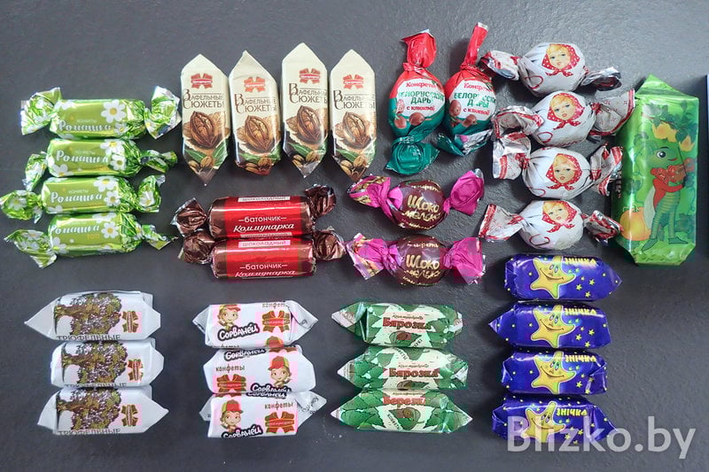 Самыя танныя цукеркі ў наборы — «Ромашка» і «Любимая Аленка»: па 10 рублёў за кілаграм. А даражэй за ўсіх стаяць «Трюфельные» вафельныя ў малочным шакаладзе: 30,92 рубля за кілаграм.