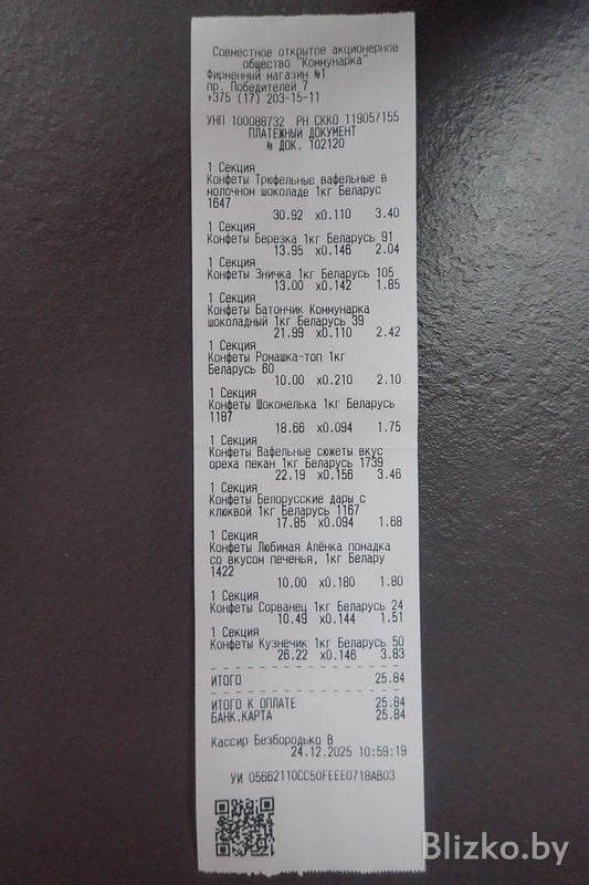 У гэтай краме №1 ёсць каса самаабслугоўвання, але яна няпоўнафункцыянальная: на ёй нельга аплаціць вагавыя тавары — можна толькі тыя, што са штрых-кодам. Гэта калі не сорам, дык велізарны мінус. Тое, што ўмее любая самакаса ў любым прадуктовым магазіне, недаступна касе ў флагманскай краме салодкага.