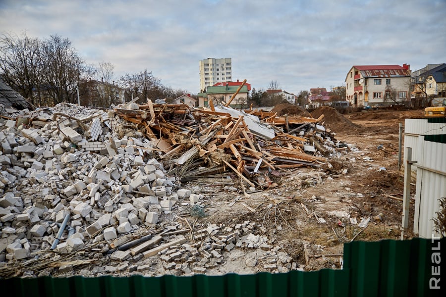 У будаўнічае смецце ператварыліся адразу два рады дамоў. Там былі і старыя драўляныя хаты, і адносна трывалыя і салідныя пабудовы.