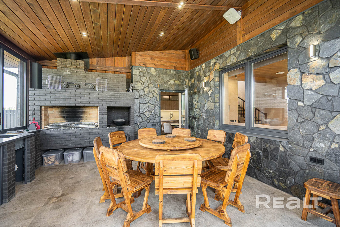 Внутри сделан хороший ремонт. Дом уже обставлен мебелью и техникой. На первом этаже разместились две кухни. Одна оборудована для барбекю.