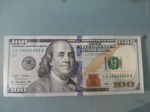 На інтэрнэт-пляцоўцы ay.by з'явіўся лот, які ацэняць калекцыянеры ці аматары нумаралогіі. На гандаль выстаўленая стадаляравая купюра. Яна сапраўдная, а яе ўладальнік хоча атрымаць за яе мінімум 700 беларускіх рублёў. На банкноце, як і належыць, намаляваны Бенджамін Франклін, паведамляе blizko.by.