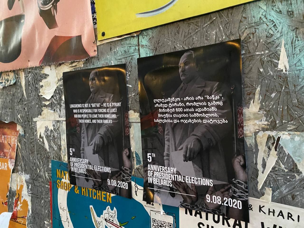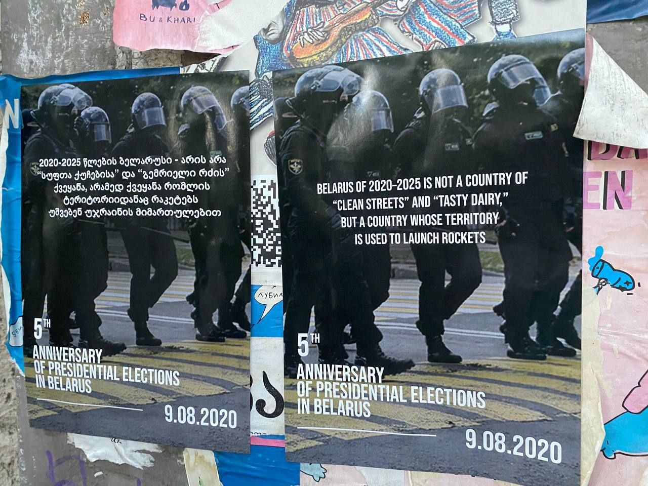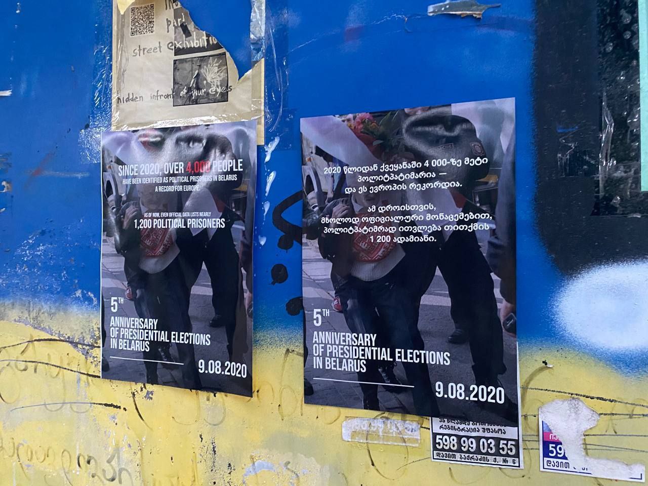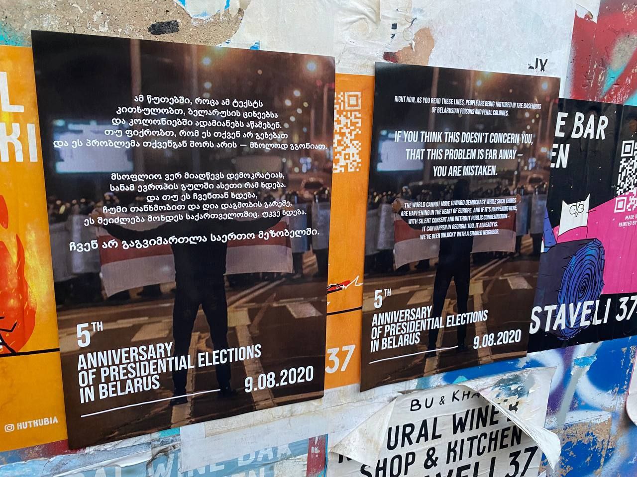 Читатели Paper Kartuli заметили расклеенные по городу плакаты, рассказывающие о протестах 2020 года в Беларуси.