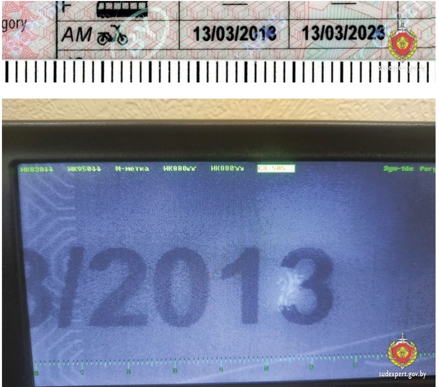 Эксперты высветлілі, што 63-гадовы беларус «выправіў» звычайнай шарыкавай асадкай пасведчанне кіроўцы, павялічыўшы дату яго дзеяння. Ён дапісаў рыскі да першапачатковай лічбы «3», ператварыўшы 2013 год у 2018-ы.
