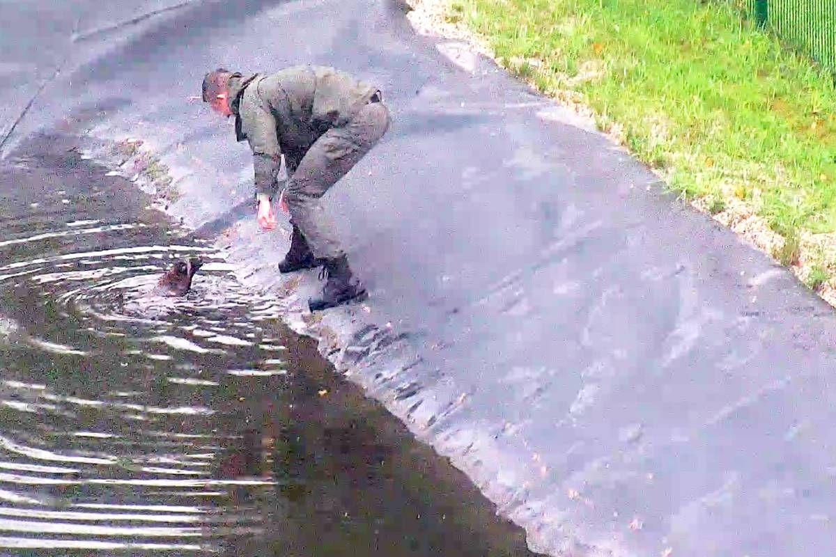 Вясёлы і адначасова кранальны інцыдэнт адбыўся ў пункце пропуску «Мядзінінкай», што на літоўскай мяжы. Памежнік выратаваў янота, які тануў, хоць і сам апынуўся ў вадзе. Падрабязнасці паведамляе СОГГ пры МУС Літвы.