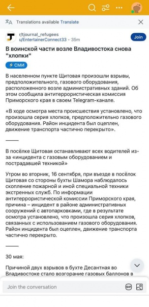 У выніку ранішняга ГУРкоту ва Уладзівастоку вядома пра загінулых і параненых акупантаў. Паводле сведчанняў відавочцаў, на месцы здарэння прысутнічаюць шматлікія машыны хуткай дапамогі.