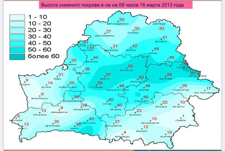 «Прычым павелічэнне снежнага покрыва на 10 см і больш закранула большую тэрыторыю», — адзначае «Метеовайб».