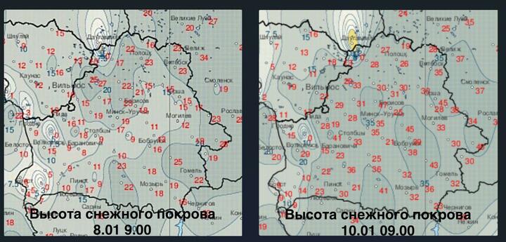 «Але з улікам дня 9 студзеня і ночы 11 студзеня, іх сумарная колькасць у Магілёве і Жлобіне склала 43 і 41 мм (больш за 1 месячную норму)», — адзначае «Метеовайб».