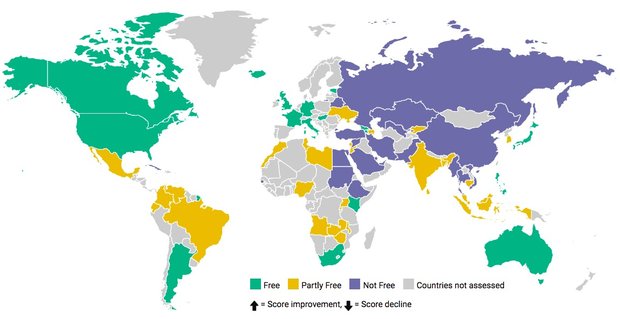 According to Freedom House, 27% of Internet users live in countries where a person can be arrested for posting, reposting and even just "liking" publications.