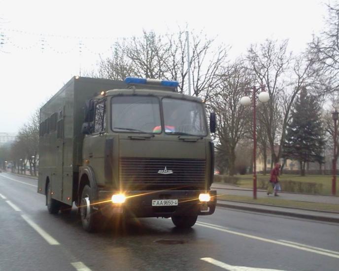 When asked on what basis the official state transport was decorated with a flag of a neighboring country, OMON officers answered: "Because we’re a commonwealth" and "fraternal nations".